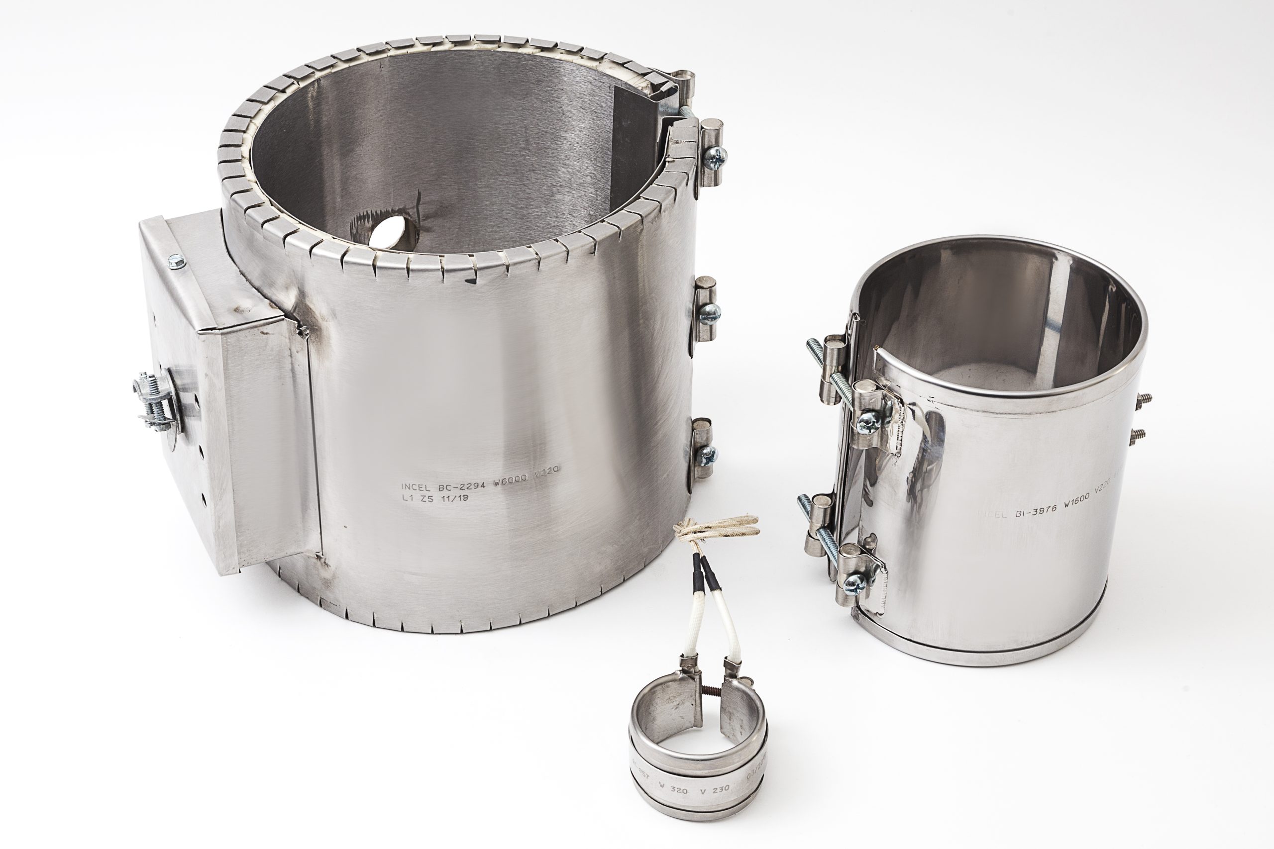Este tipo de resistencias se utilizan principalmente para máquinas de inyección o extrusión de plástico, máquinas de soplado o cualquier otra aplicación en la que se requiera calentar por transmisión de calor. la fabricación más común es con el núcleo de mica, pero cuando se requiere más calor en el proceso o mas tiempo de duración de las resistencias, es conveniente utilizar bandas con nucleo ceramico. para que más resistencias tipo banda tengan un tiempo de vida óptimo, es necesario que hagan buen contacto con la superficie a calentar, para eso es muy importante proporcionar los diámetros de los cañones de las máquinas, nosotros les daremos la tolerancia adecuada para que ajusten perfectamente al cañón. Aunado esto a la calidad incel le dará larga vida a las resistencias. fabricamos resistencias tipo banda (redondas) o tipo tira (rectangulares o cuadradas)